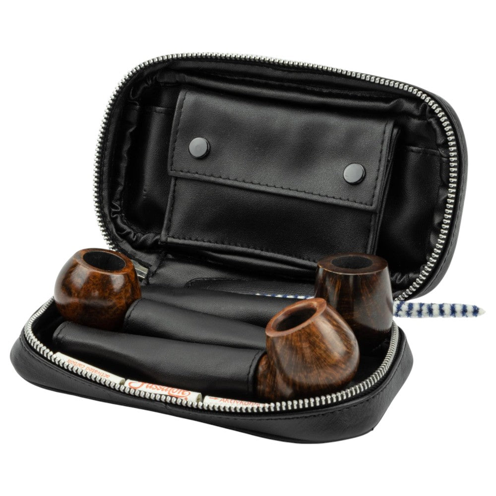 Get control of your pipes and your equipment when you're out in the community with a pipe bag or pipe pouch - then it's easier to just sneak a stop in without too much fuss. We have pipe bags and pipe tobacco pouches that make life as a pipe smoker easier, you have pipes and tools together, space for pipe cleaners and tobacco - sometimes a tobacco tin can do it too, and they're cheap. Keep control of your tobacco and your pipe, it's expensive - our pipe bags, pipe pouches and tobacco tins are not :-)